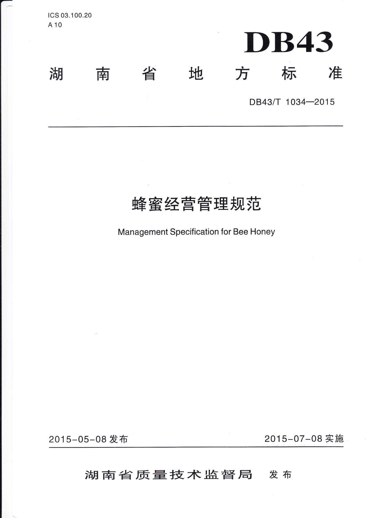 DB43 T 1034-2015蜂蜜经营管理规范.pdf