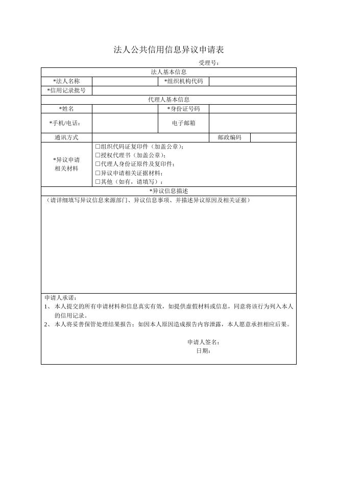 杭州市法人公共信用信息异议申请表.docx