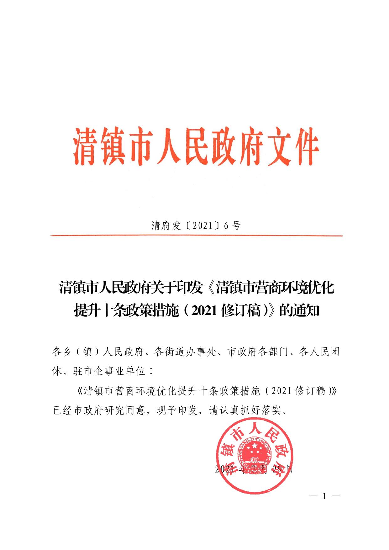 清府发〔2021〕6 号__清镇市人民政府关于印发《清镇市营商环境优化__提升十条政策措施(2021 修订稿)》的通知.pdf