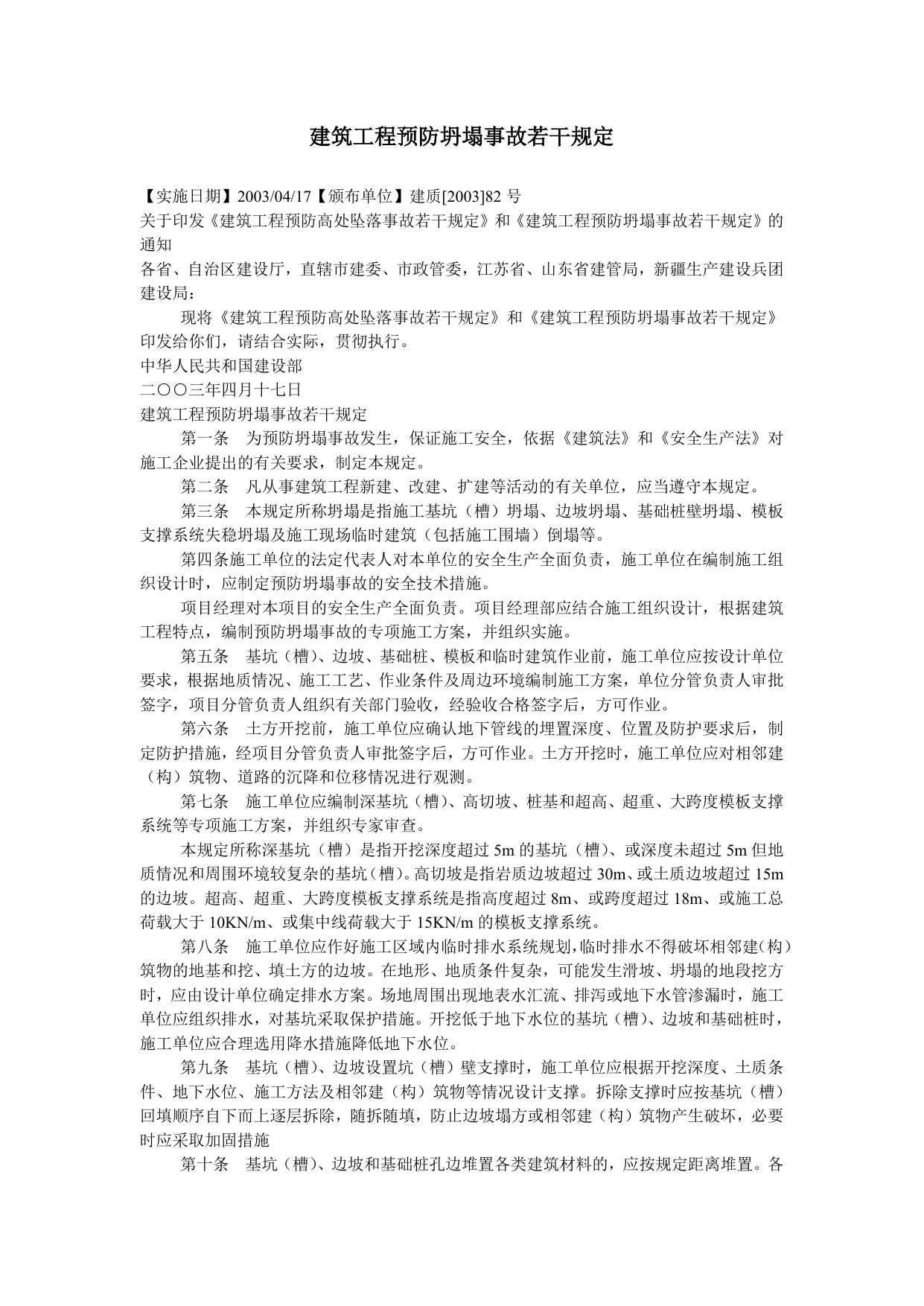 建筑工程预防坍塌事故若干规定.doc