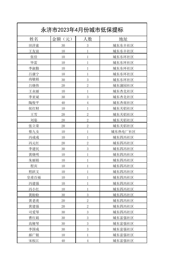 (公示)永济市2023年4月份城市低保金.xlsx