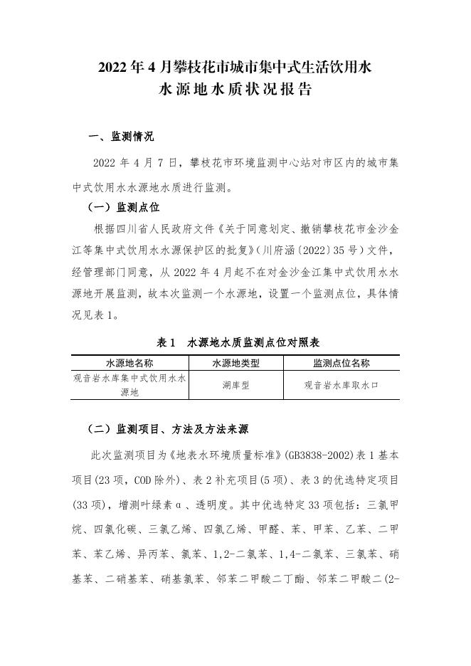 2022年4月攀枝花市城市集中式生活饮用水.pdf