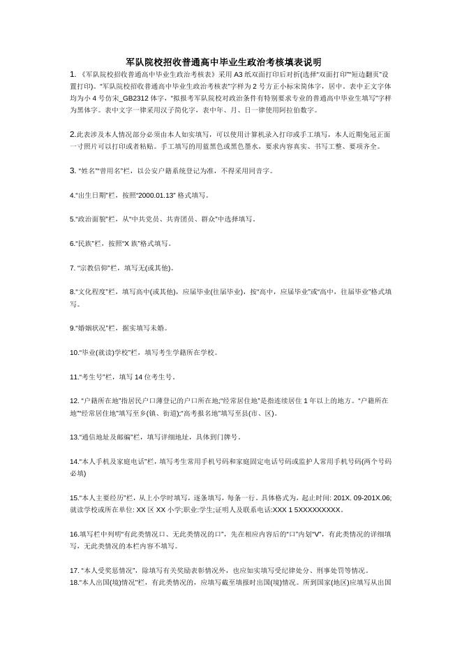 军队院校招收普通高中毕业生政治考核填表说明.docx