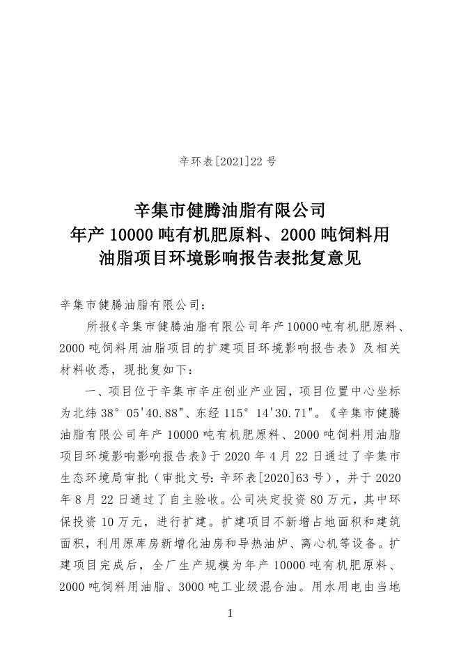 22辛集市健腾油脂有限公司年产10000吨有机肥原料、2000吨饲料用油脂项目的扩建项目.doc