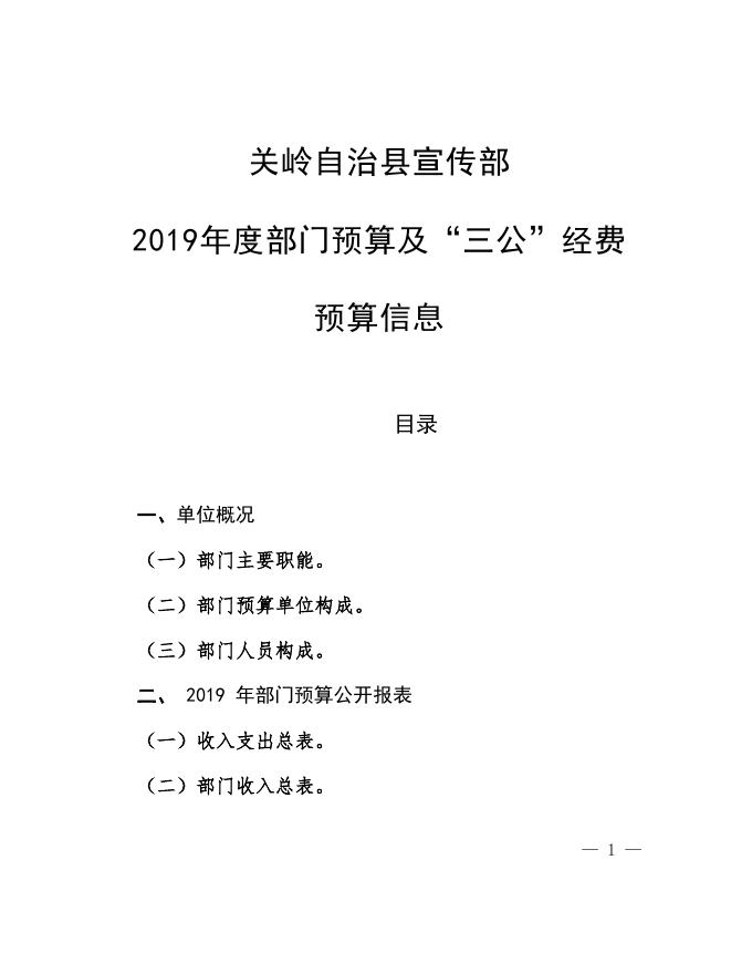 关岭自治县宣传部2019年度部门预算及“三公”经费预算说明.docx