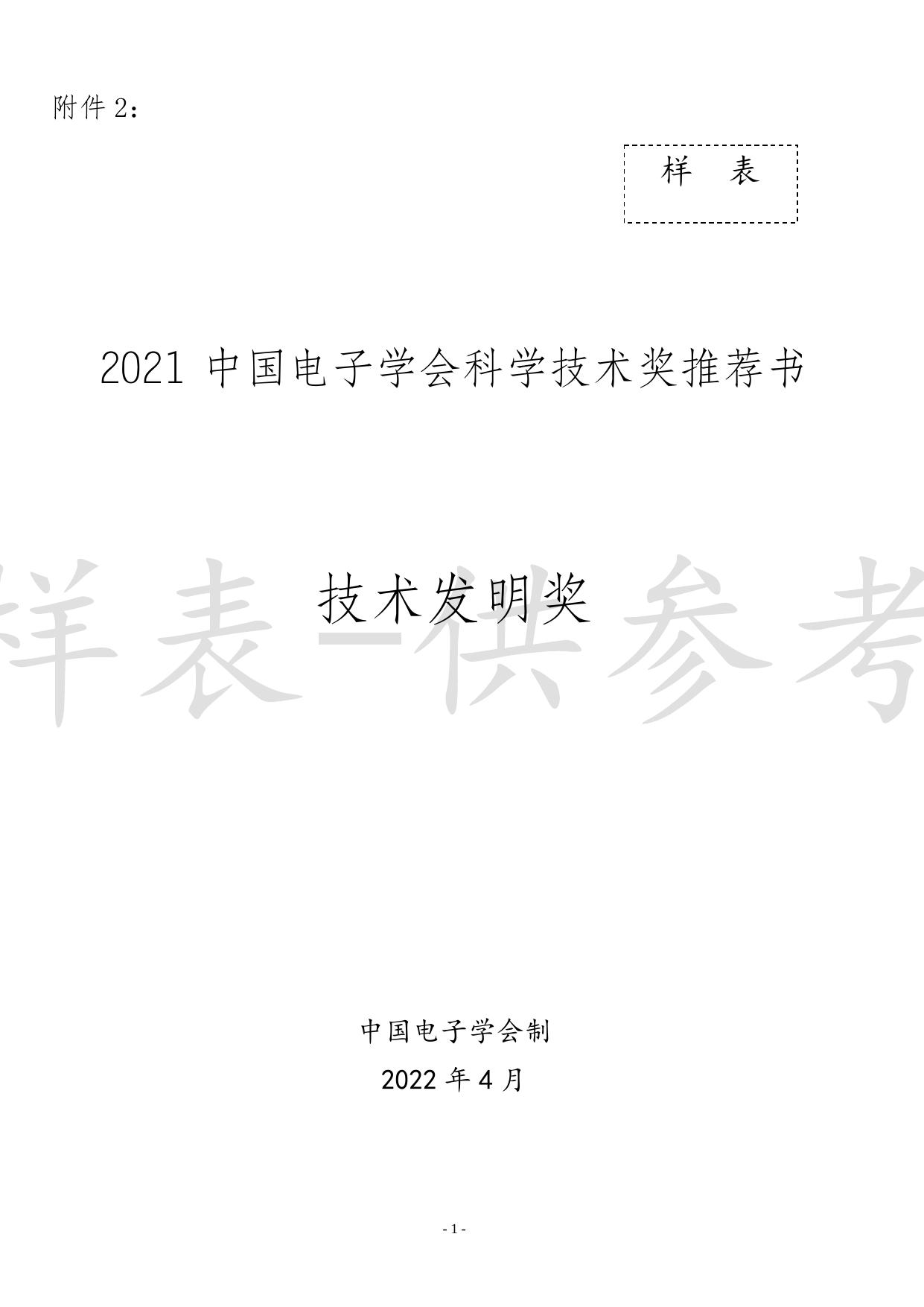 附件2-2022中国电子学会科学技术奖推荐书——技术发明奖(样表).docx