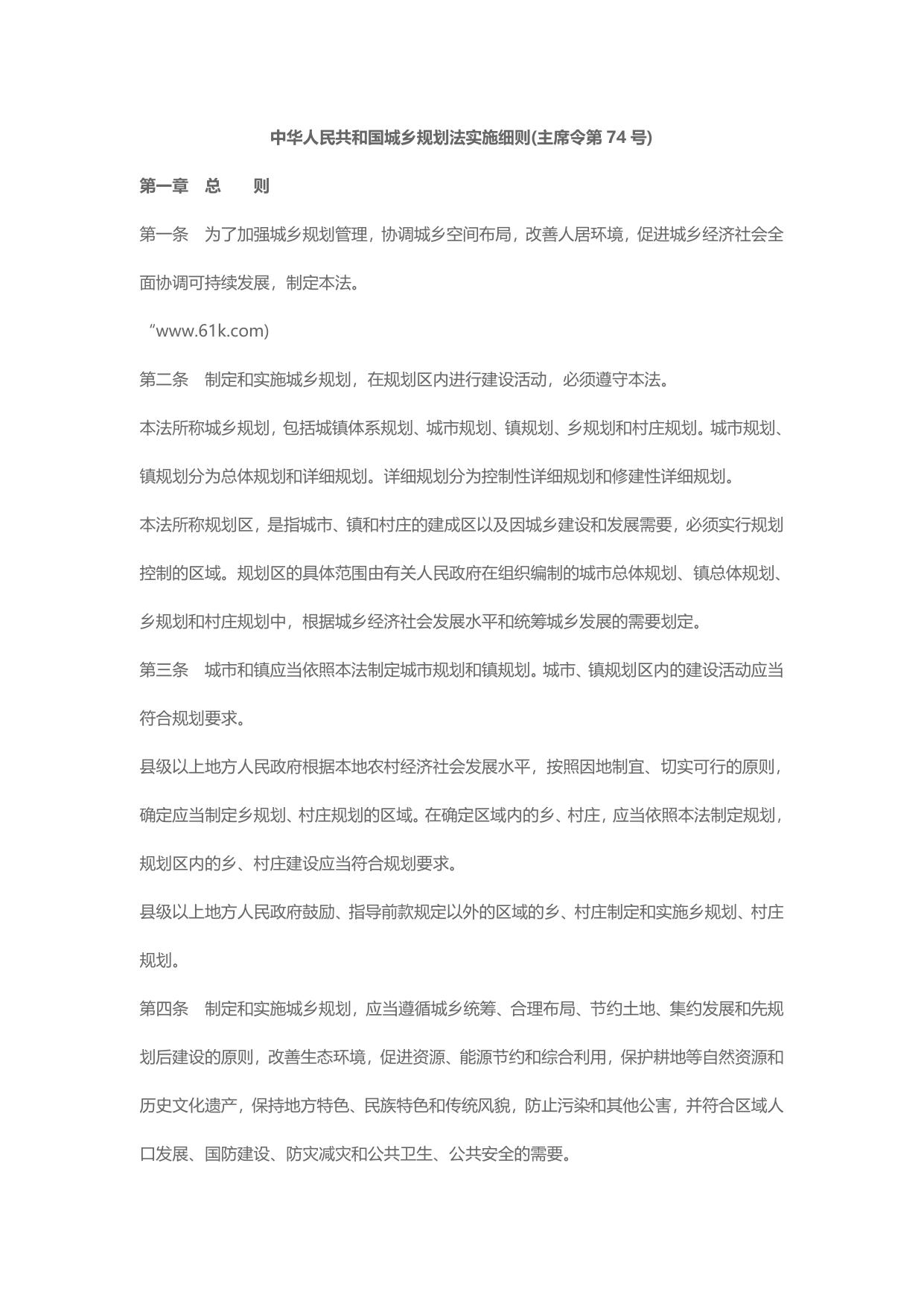 中华人民共和国城乡规划法实施细则(主席令第74号) 下载.doc