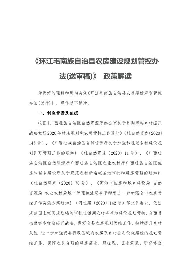 环江毛南族自治县农房建设规划管控办法政策解读(1).docx