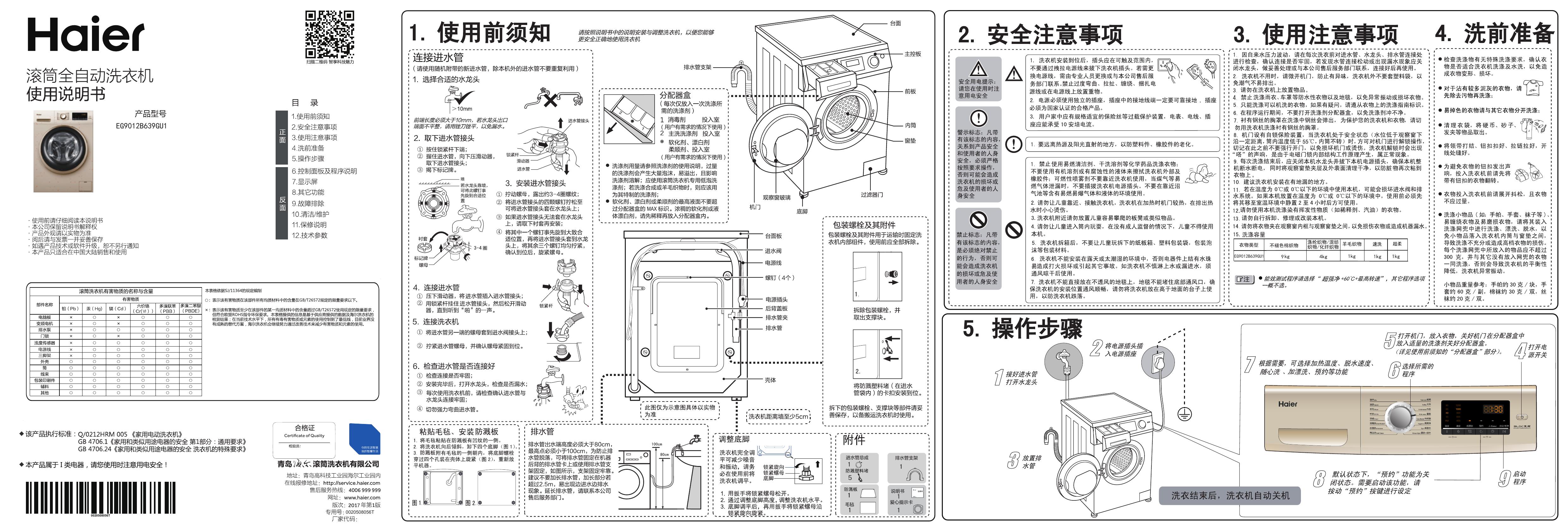 海尔Haier 洗衣机 EG9012B639GU1 说明书.pdf