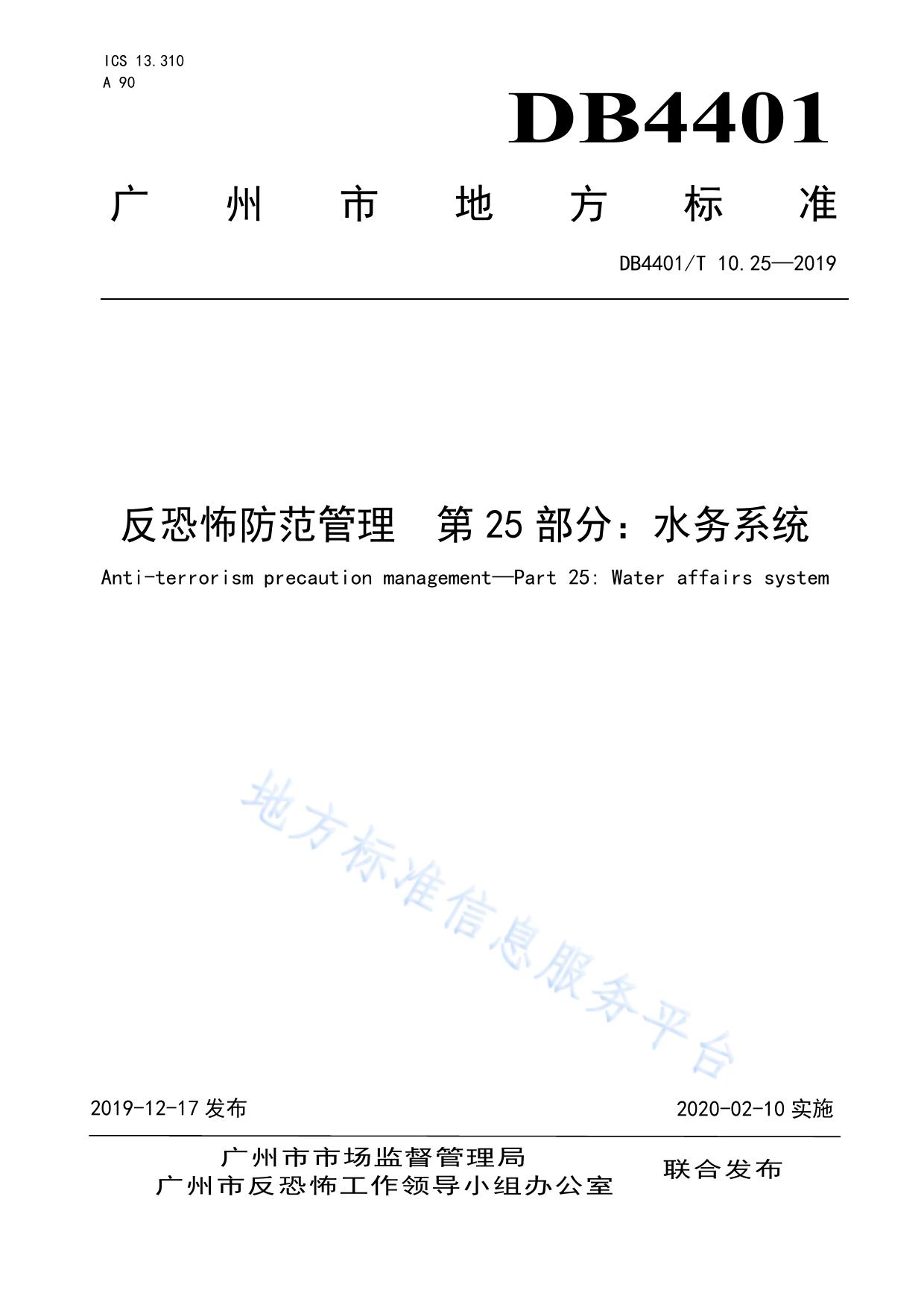反恐怖防范管理 第25部分:水务系统