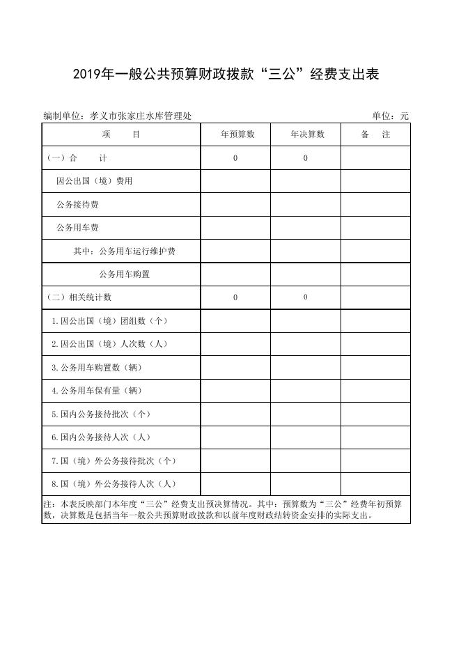 孝义市张家庄水库管理处2019年一般公共预算财政拨款“三公”经费支出表.xlsx