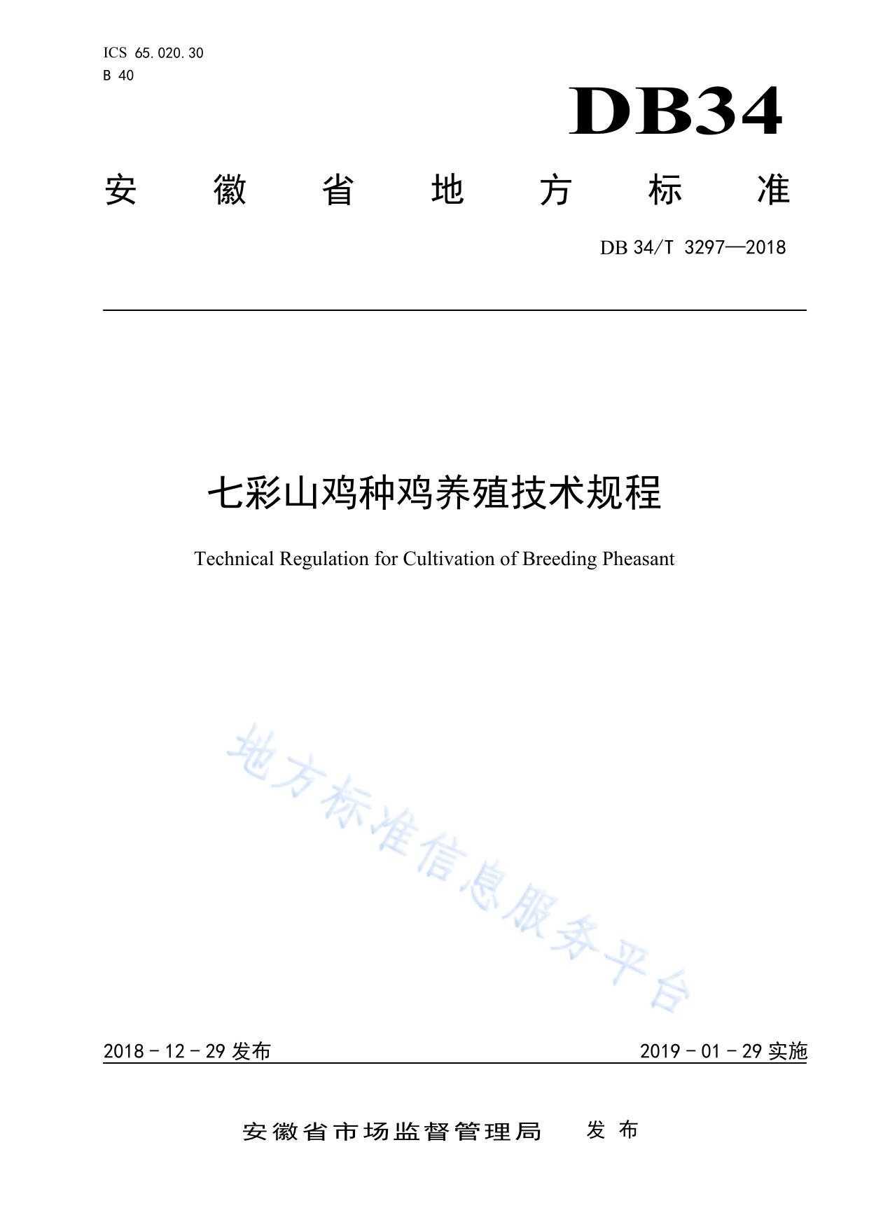 七彩山鸡种鸡养殖技术规程