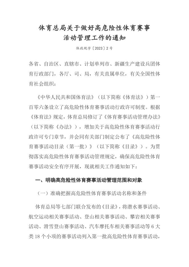 体育总局关于做好高危险性体育赛事活动管理工作的通知.docx