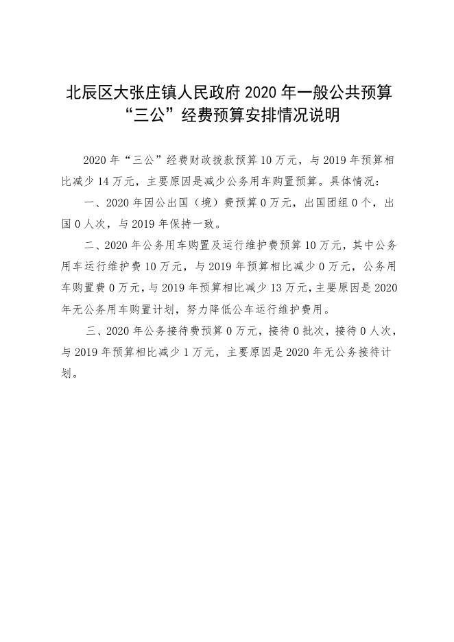 北辰区大张庄镇人民政府2020年一般公共预算“三公”经费预算安排情况说明.doc