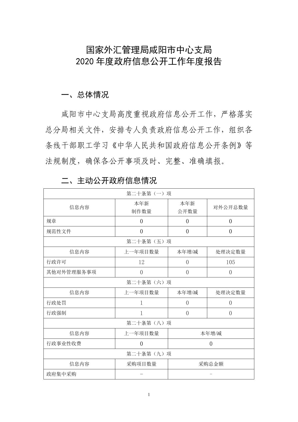 國家外匯管理局鹹陽市中心支局2020年度政府資訊公開工作報告.pdf