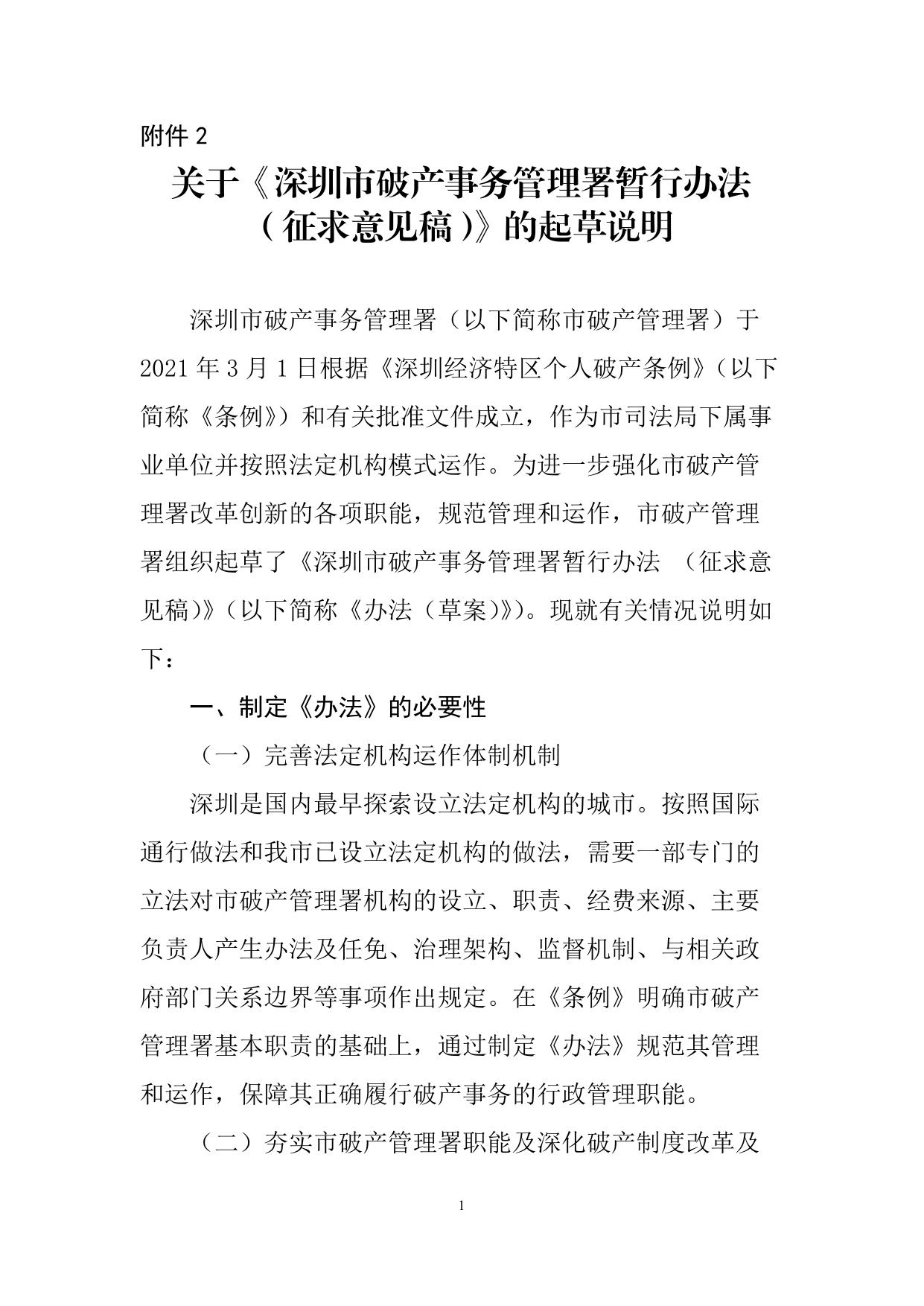 附件:2.关于 《深圳市破产事务管理署暂行办法(征求意见稿)》的起草说明.docx