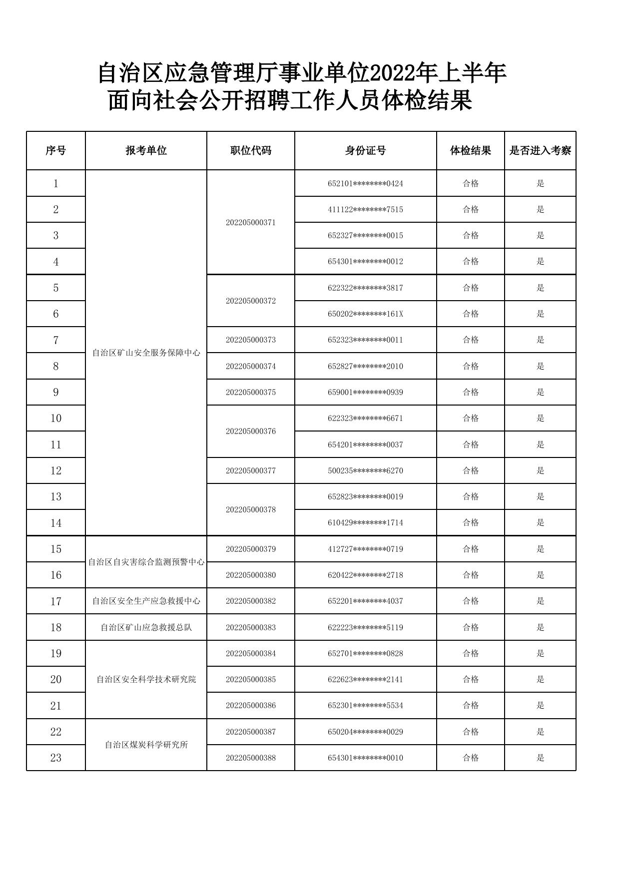 自治区应急管理厅事业单位2022年上半年面向社会公开招聘工作人员体检结果.xlsx