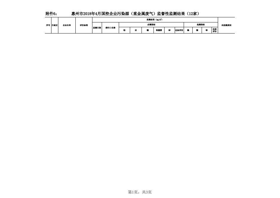 附件6:惠州市2018年4月国控企业污染源(重金属废气)监督性监测数据表(12家).xls