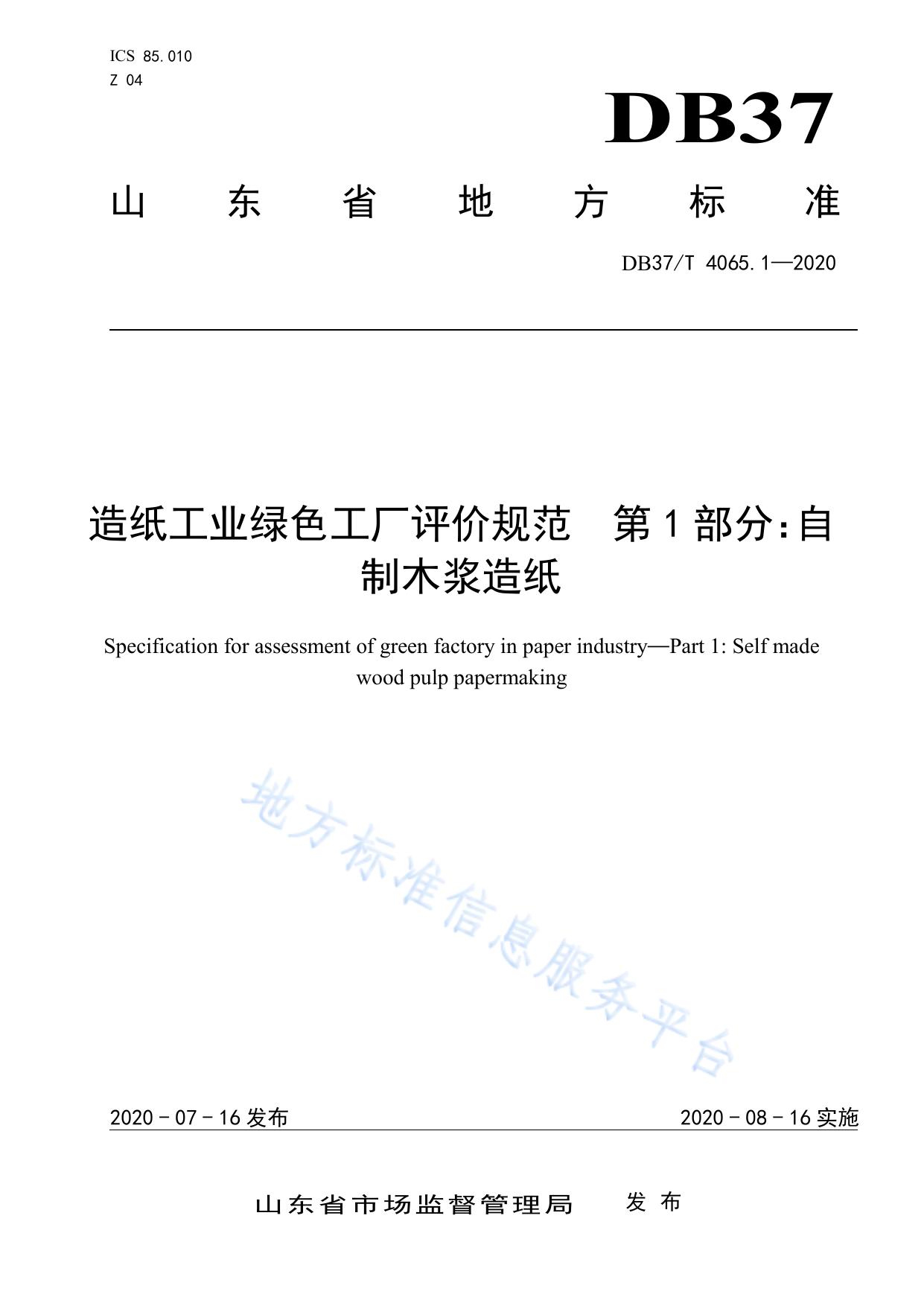 造纸工业绿色工厂评价规范 第1部分:自制木浆造纸
