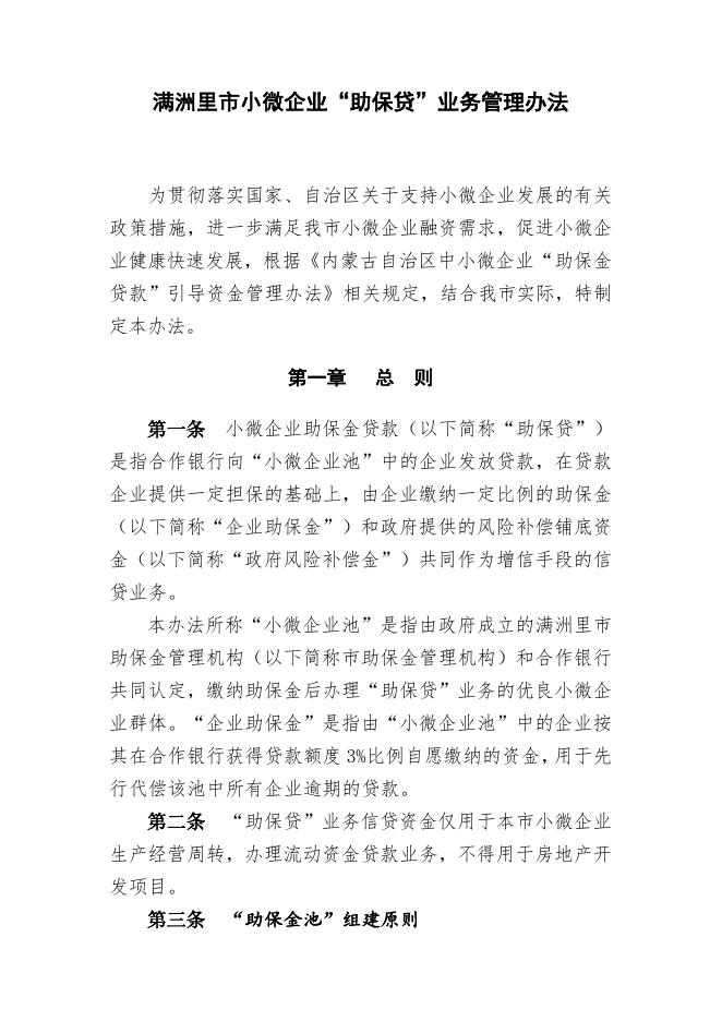 附件1 满洲里市小微企业“助保贷”业务管理办法.doc