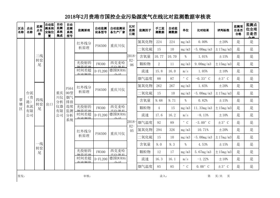 附件4:2018年2月贵港市国控企业污染源废气在线比对监测数据审核表.xls