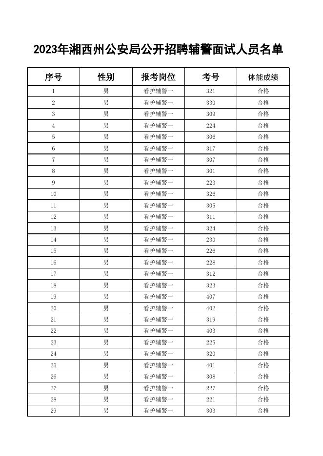 2023年湘西州公安局公开招聘辅警面试人员名单.xlsx