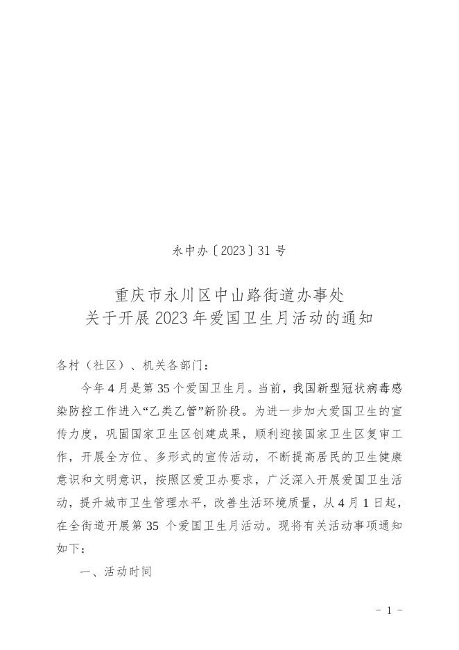 重庆市永川区中山路街道办事处关于开展2023年爱国卫生月活动的通知.docx