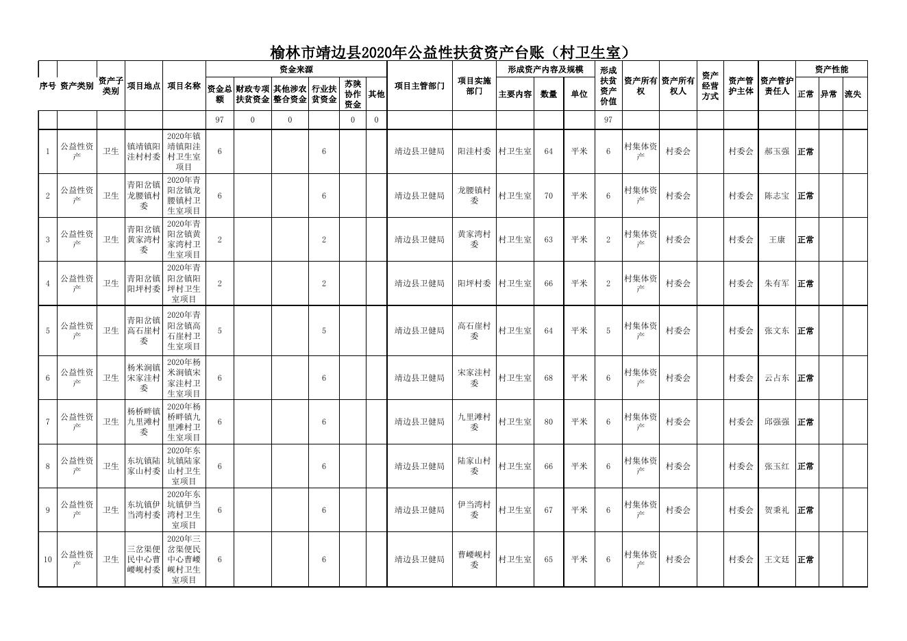 榆林市靖边县2020年公益性扶贫资产台账(村卫生室).xls