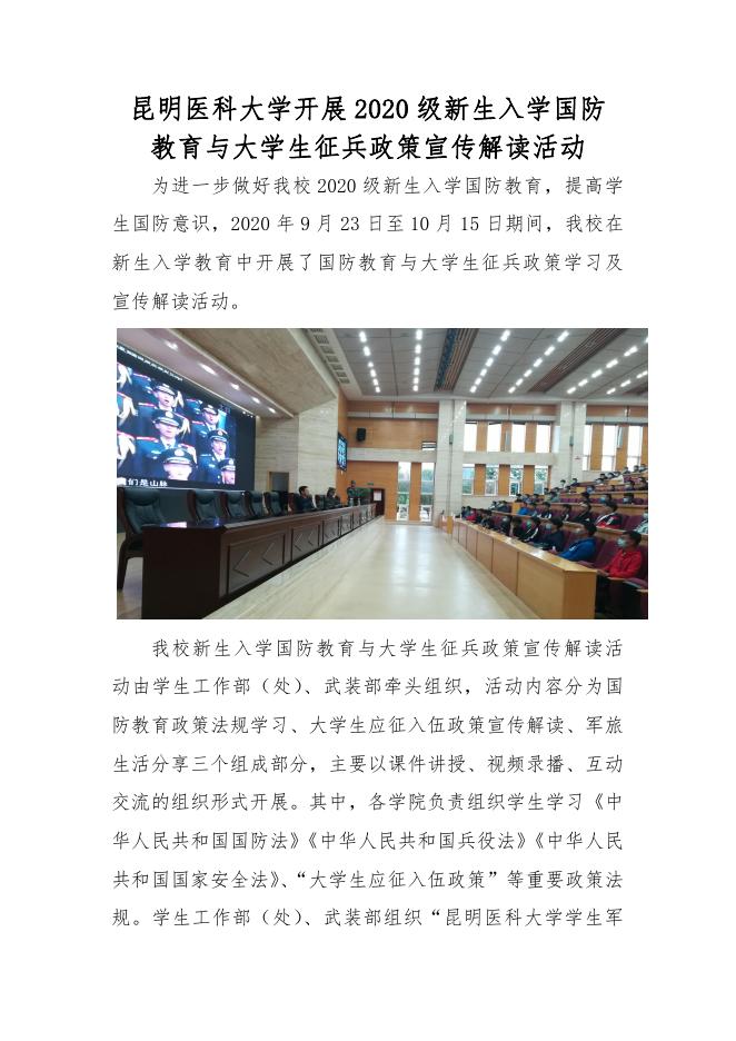 昆明医科大学开展2020级新生入学国防教育与大学生征兵政策宣传解读活动.pdf
