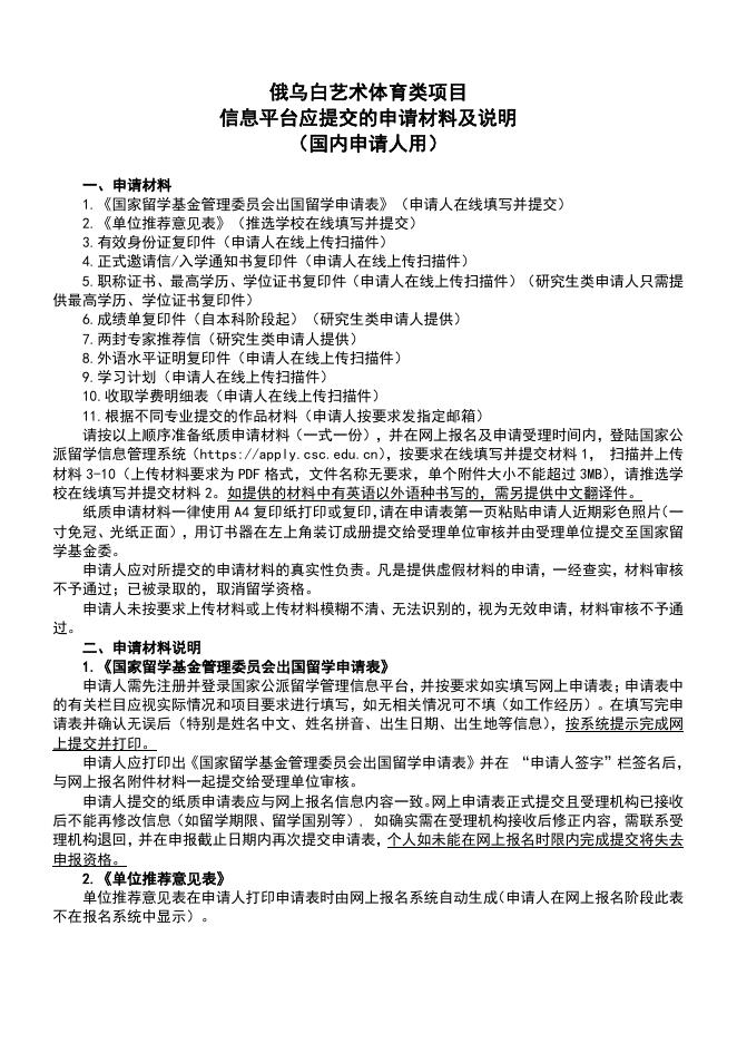 附件 俄乌白艺术体育类项目信息平台应提交的申请材料及说明(国内申请人用).pdf