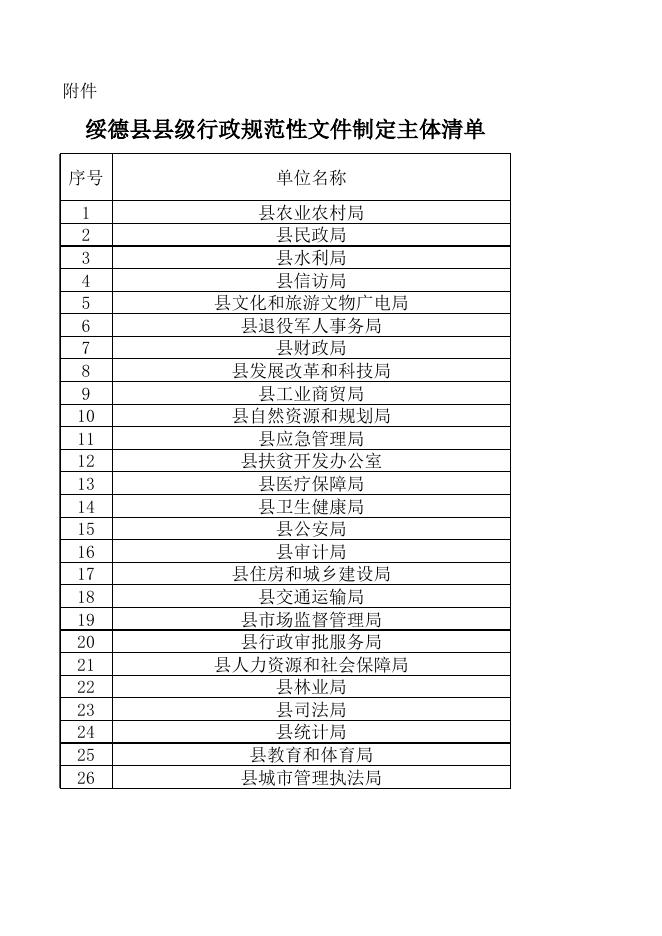 附件:绥德县县级行政规范性文件制定主体清单.xls