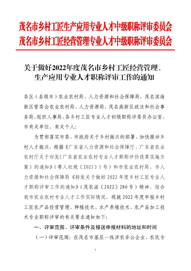 (附件)关于做好2022年度茂名市乡村工匠经营管理、生产应用专业人才职称评审工作的通知.pdf