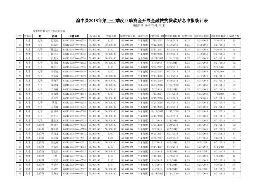 附件:湟中县2018年第三季度互助资金开展金融扶贫贷款贴息申报统计表.xlsx