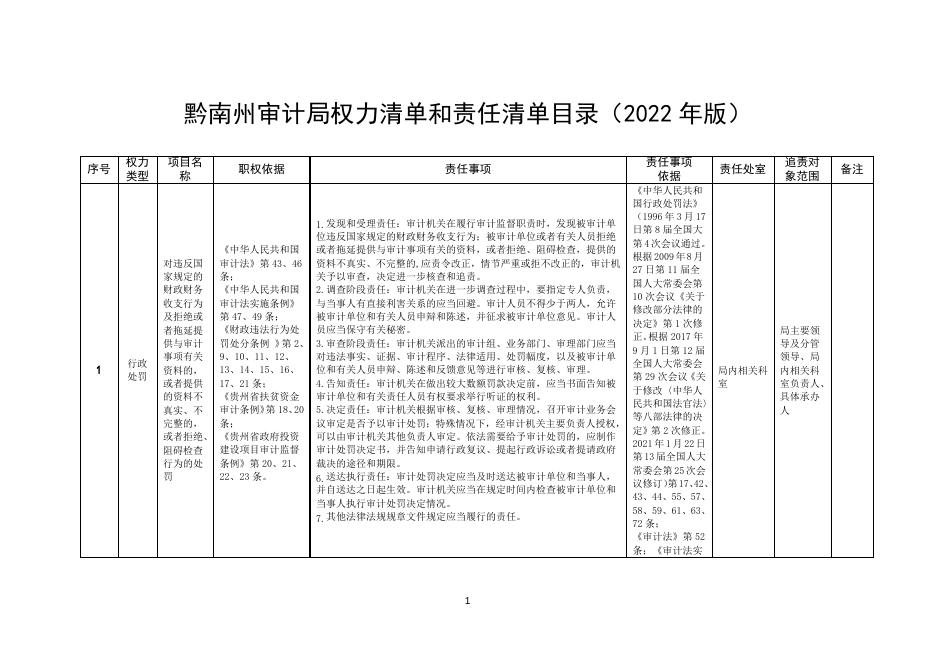 黔南州审计局权力清单和责任清单目录(2022年版).doc
