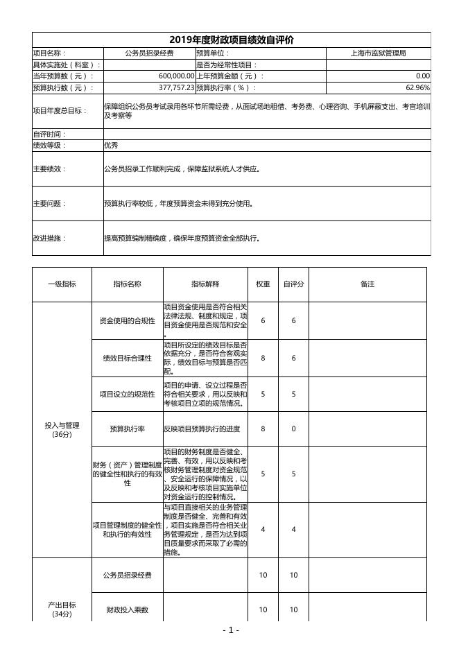 上海市监狱管理局2019年度项目绩效自评表.pdf