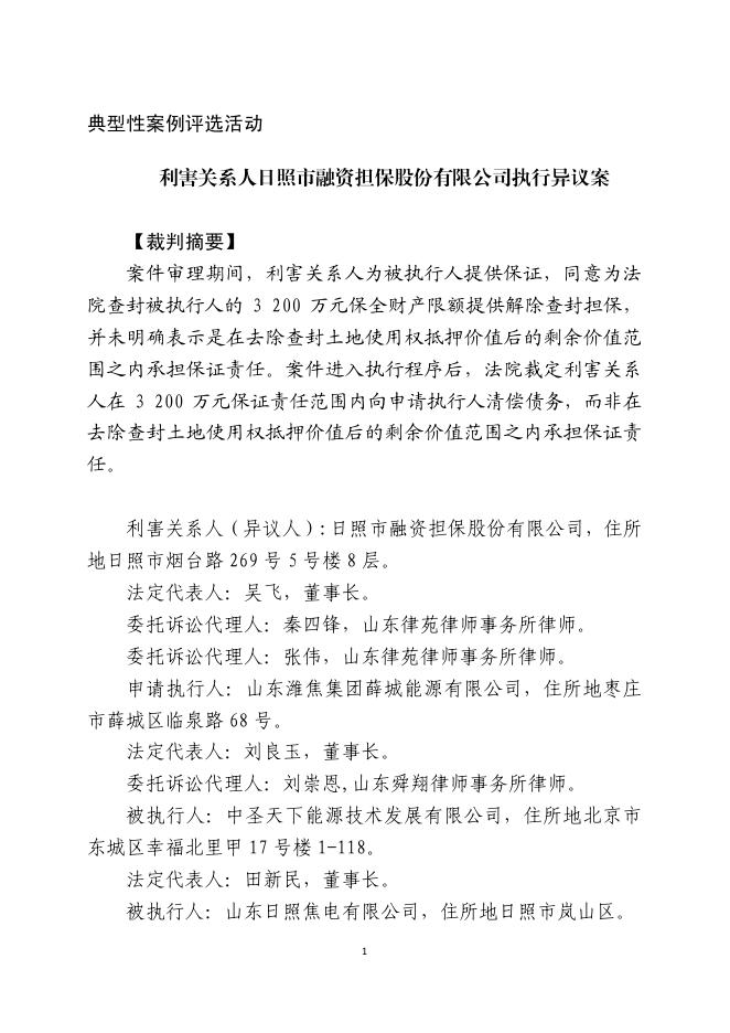 全省法院第九届典型性案例评选获奖案例 丨利害关系人日照市融资担保股份有限pdf