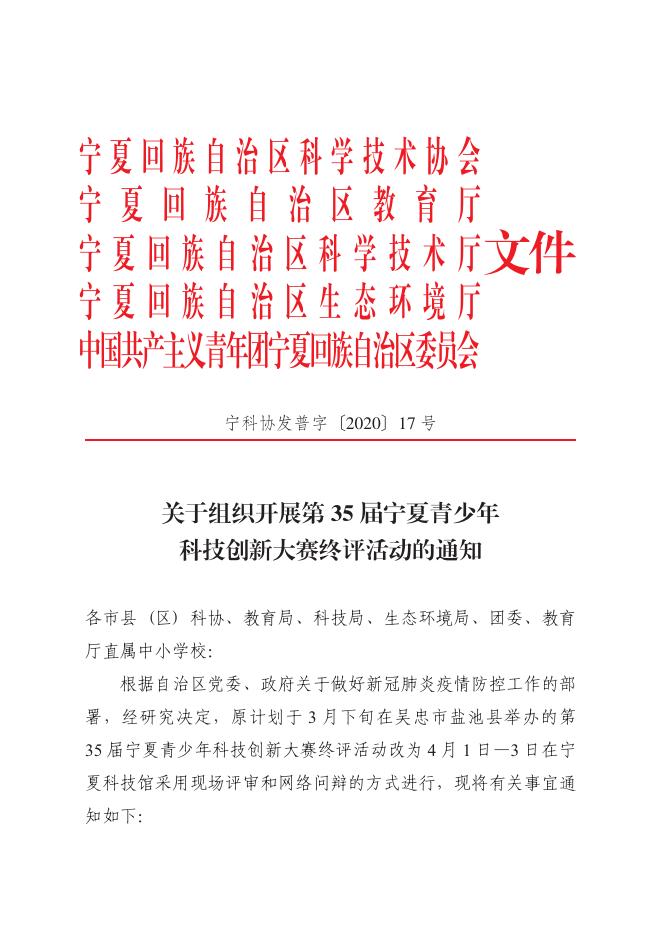 关于组织开展第35届宁夏青少年科技创新大赛终评活动的通知.pdf