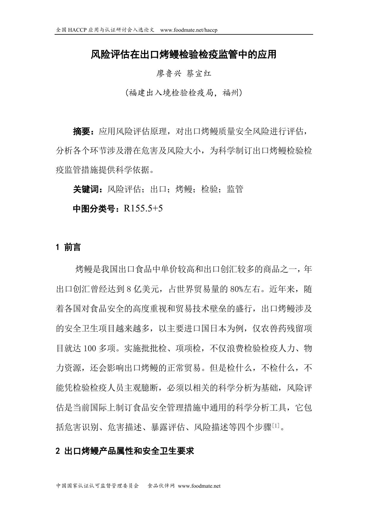 《风险评估在出口烤鳗检验检疫监管中的应用》.doc