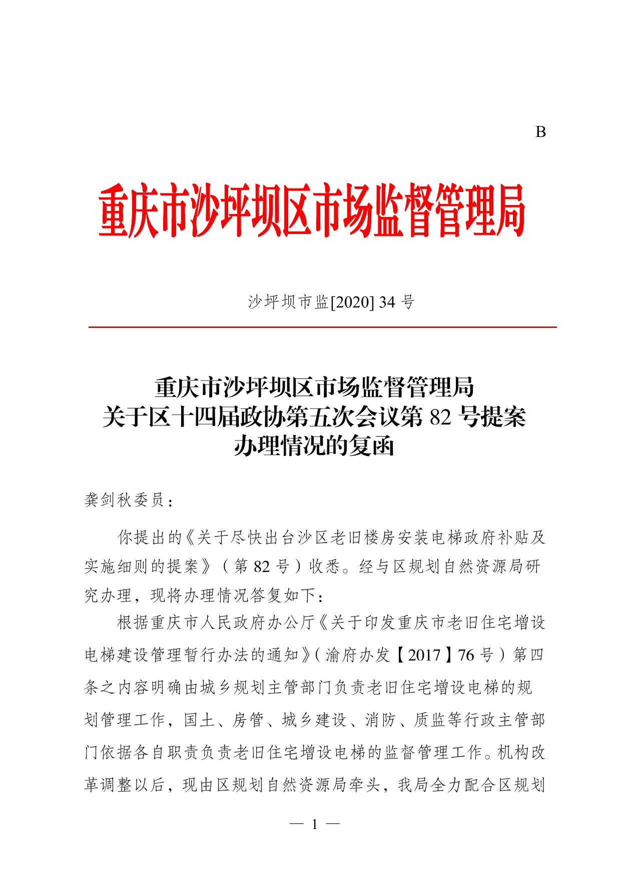 重庆市沙坪坝区市场监督管理局关于区十四届政协第五次会议第82号提案办理情况的复函.pdf