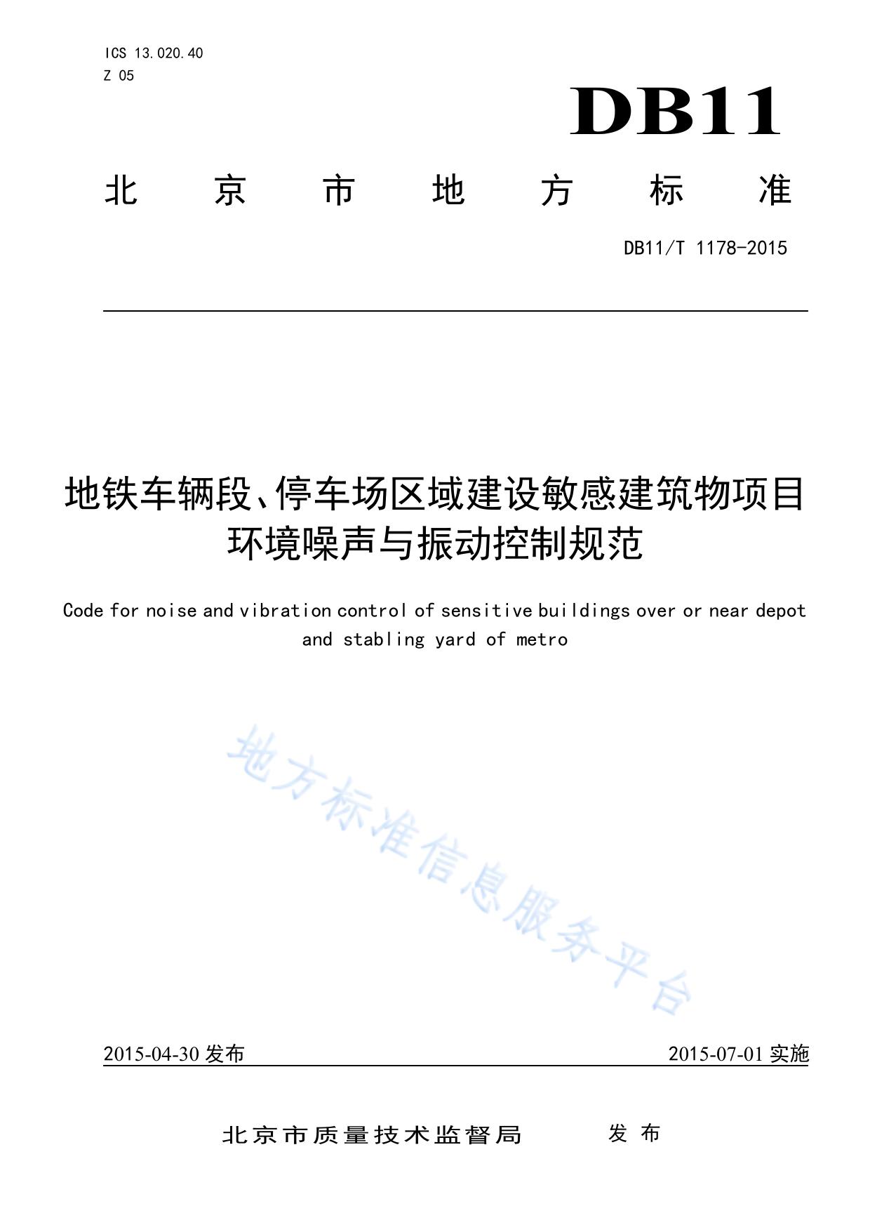 地铁车辆段、停车场区域建设敏感建筑物项目环境噪声与振动控制规范