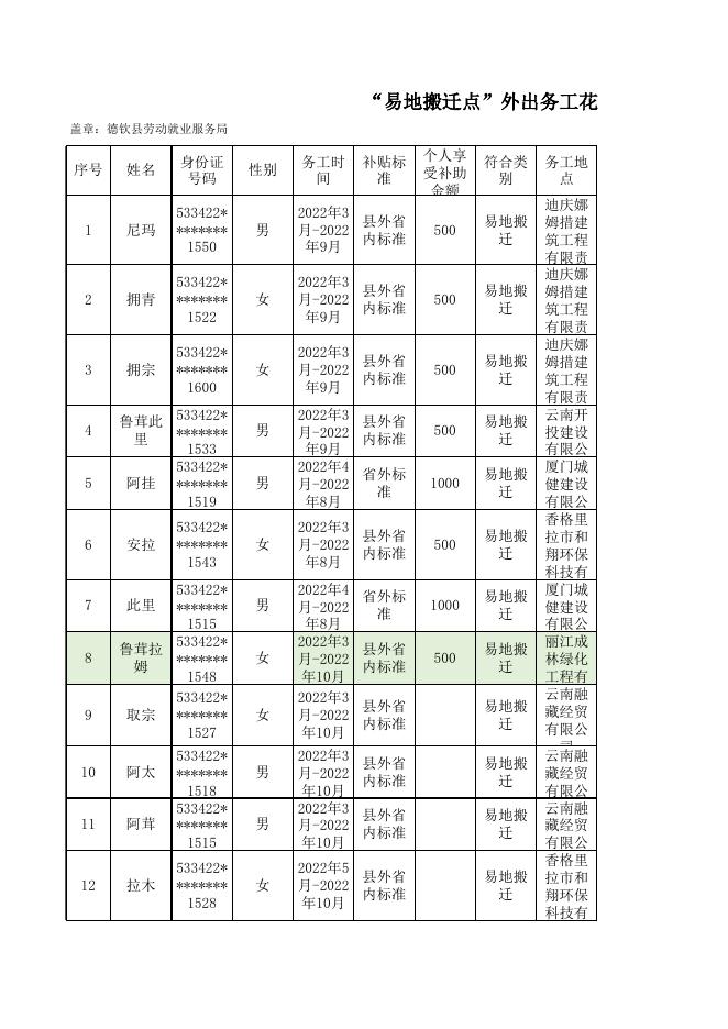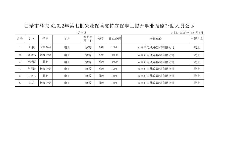 曲靖市马龙区2022年第七批失业保险支持参保职工提升职业技能补贴人员公示.xlsx