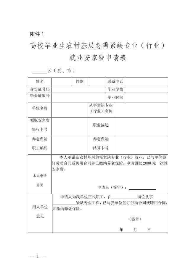 高校毕业生农村基层急需紧缺专业(行业)就业安家费申请表.docx