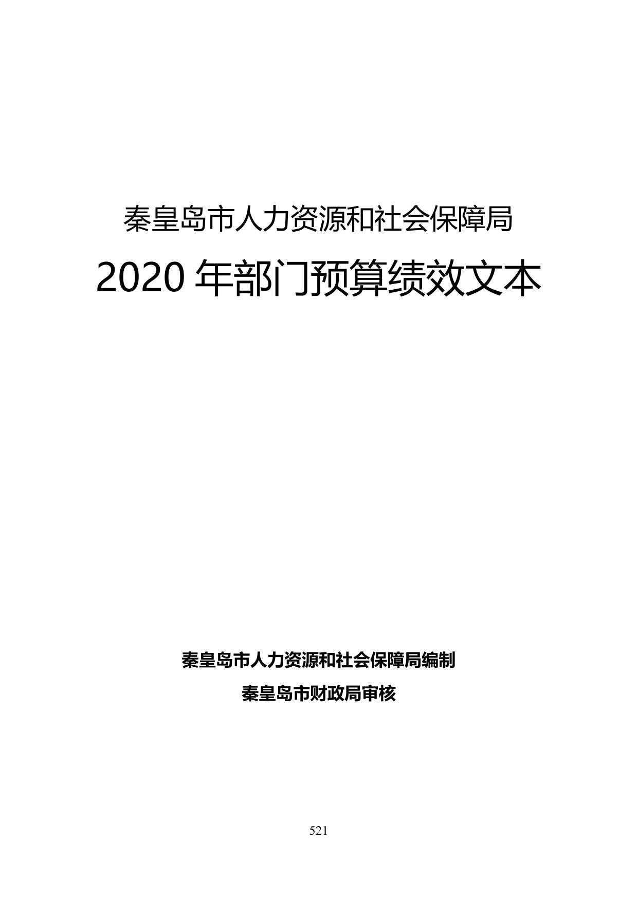 秦皇岛市人力资源和社会保障局2020年部门预算绩效信息.doc