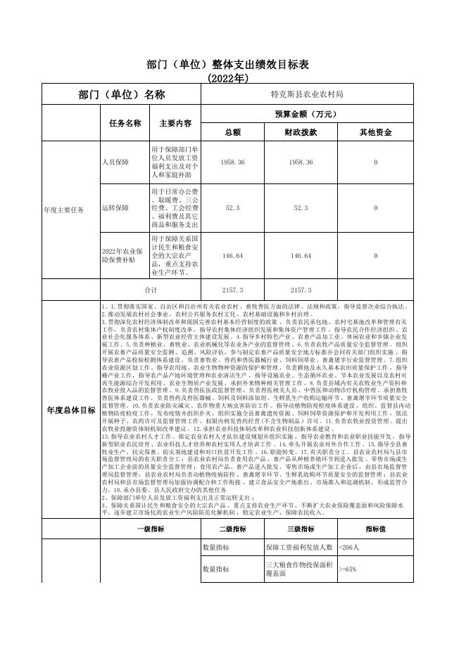 10.特克斯县农业农村局2022年整体支出绩效目标表.pdf