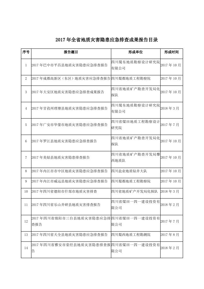 2017年全省地质灾害隐患应急排查成果报告目录.docx