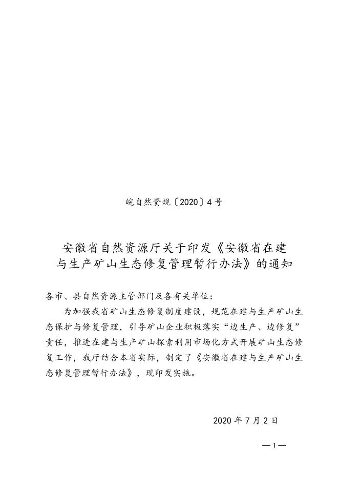 安徽省自然资源厅关于印发《安徽省在建与生产矿山生态修复管理暂行办法》的通知.doc