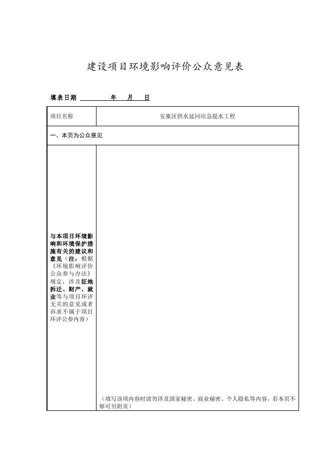 安塞区供水延河应急提水工程环境影响评价第一次信息公开.docx