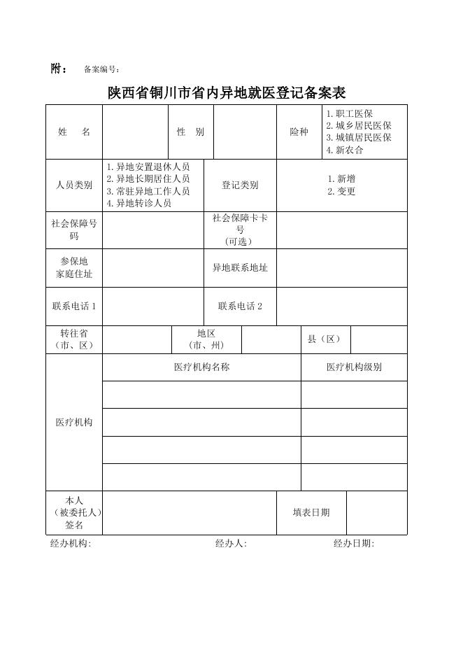 附:《陕西省铜川市省内异地就医登记备案表》.doc