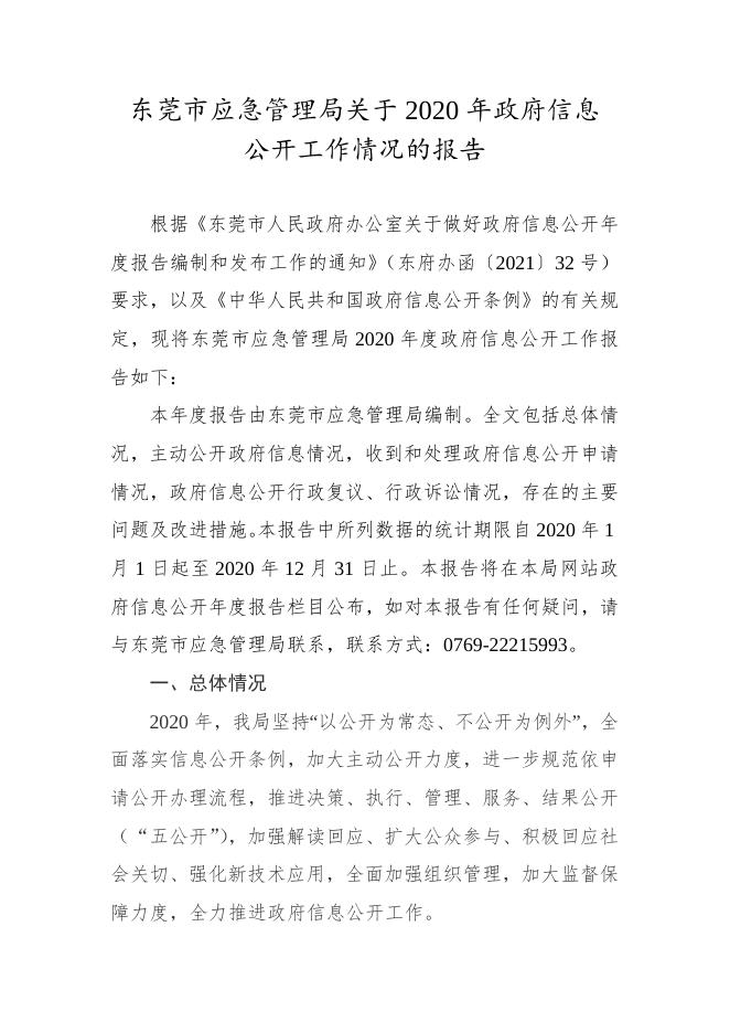 东莞市应急管理局关于2020年政府信息公开工作情况的报告.docx