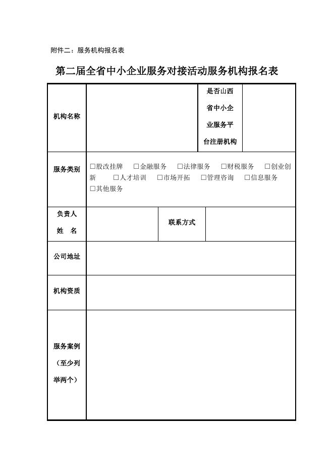 第二届全省中小企业服务对接活动服务机构报名表.docx